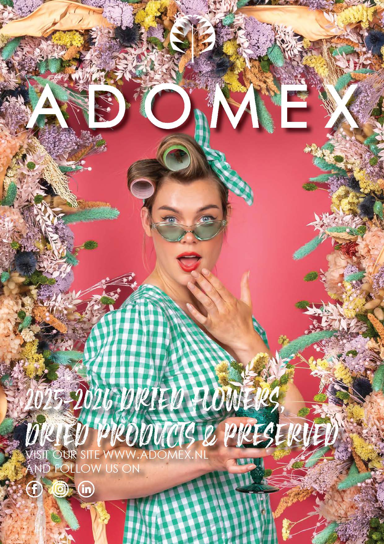 - Adomex biedt naast snij- en decoratiegroen ook droogbloemen, gepreserveerde en geverfde producten en natuurlijke decoratie artikelen